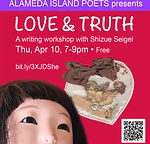 Thurs, Apr 10, 7-9pm on Zoom: Alameda Island Poets poetry workshop led by Shizue Seigel on Love and Truth, the complexities of love and communication.